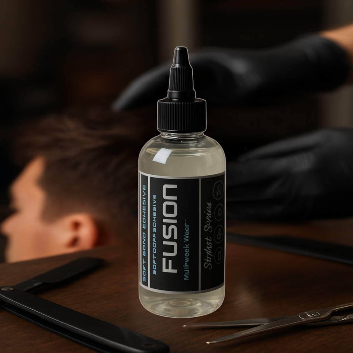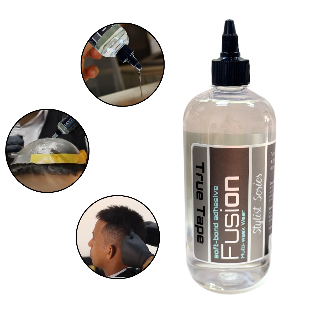 A Cola Fusion possui 454 ml, é líquida e transparente. Pode ser usada em todos os modelos de próteses capilares, possuindo um tempo de adesão de 2 a 4 semanas, variando conforme a oleosidade da pele e a umidade do corpo. Ela é conhecida por sua forte aderência, resistência à água e é hipoalergênica com base em silicone. Recomenda-se aplicar uma camada fina e deixar secar por alguns minutos antes de colocar a prótese. Não é indicado para quem retira a prótese todos os dias.