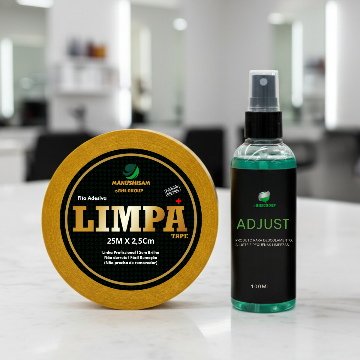 Kit Limpa Fácil - Fita Adesiva Limpa Tape 25m x 2,5cm + Adjust 100ml