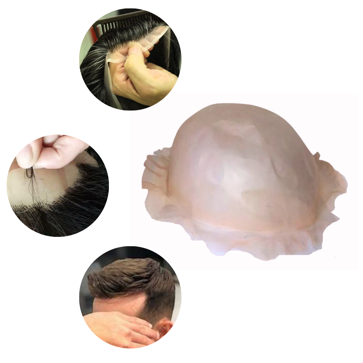 A película para confecção de prótese capilar é fabricada em um material ultrafino e transparente, esta película é usada como a base sobre a qual os fios de cabelo são implantados. Essas películas são projetadas para serem leves, respiráveis e oferecerem uma aparência natural quando usadas sobre o couro cabeludo. Elas podem ser cortadas e personalizadas de acordo com as dimensões e necessidades individuais do usuário.Este material destina-se ao uso profissional e requer cuidados devido ao seu material ultrafino. Para criar a prótese, é recomendado o uso de agulhas com 1 a 2 ou 2 a 3 fios. As medidas padrão são 29 cm de orelha a orelha, 30 cm da frontal à nuca, e circunferências aproximadas de 57 cm.