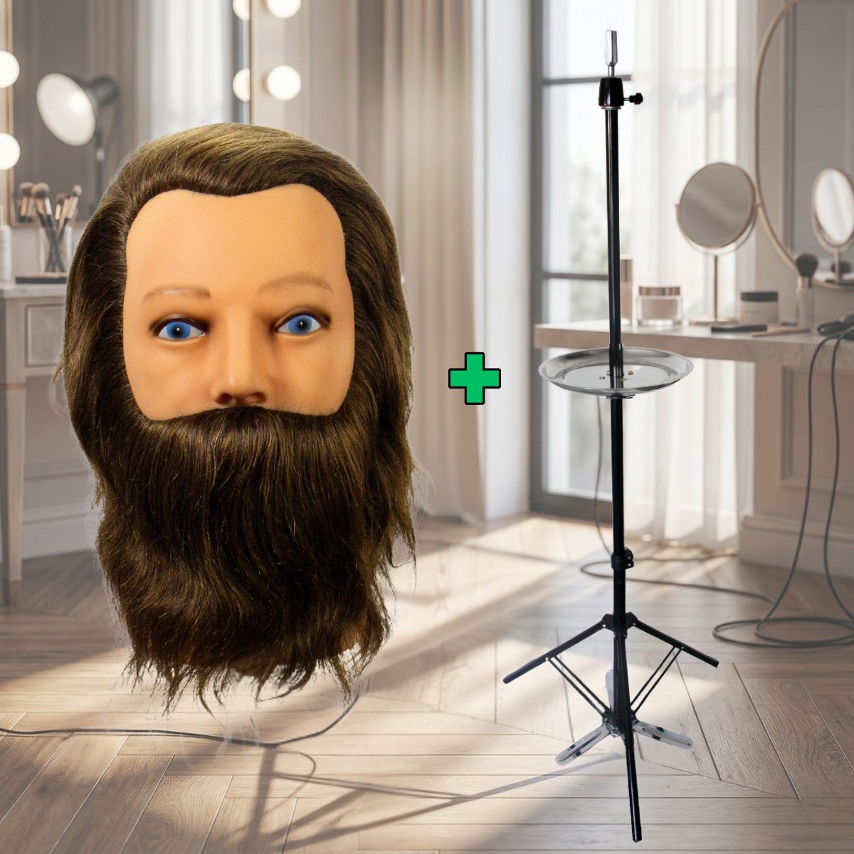 O manequim masculino com barba sem suporte é projetado especialmente para cabeleireiros iniciantes que desejam praticar suas habilidades. Com fios 100% humanos e material resistente, suporta o uso de fontes de calor até 250ºC, como secador, prancha e modelador de cachos. Ideal para escolas de beleza ou qualquer ambiente relacionado à área. As características incluem cabelo liso de fácil manuseio, comprimento de 30 cm, manequim na cor branca e material de borracha. É indicado para treinos de aperfeiçoamento em cortes e sua adesão depende dos cuidados do usuário.